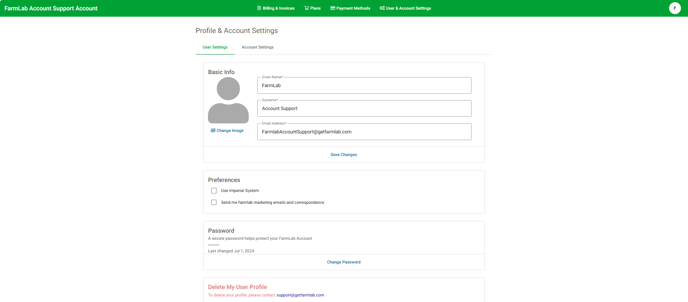 After logging into FarmLab, select the letter icon (in this case a F) at the top right hand corner of the screen.