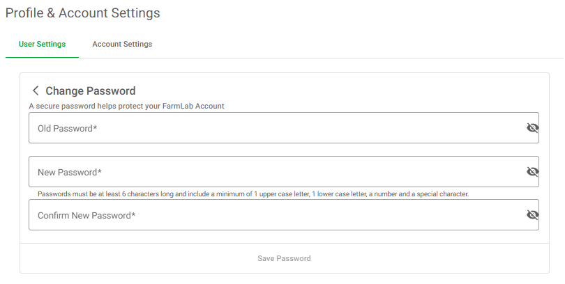Now enter the old password, followed by a new password. Passwords must be at least 6 characters long and include a minimum of 1 upper case letter, 1 lower case letter, a number and a special character. Ensure that you press the Save Password button when complete to confirm this process.