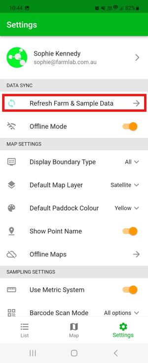 - Once sampling is completed, perform a data sync to upload the collected data.