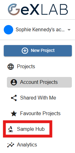 To add your lab account information into GeXLab. Firstly, navigate to the Sample Hub.