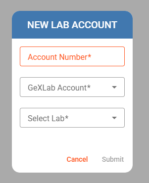 GeXLab allows users to arrange payment directly with their preferred lab. In these instances, a user can add their 'lab account' identifier for approval to the lab. This will allow submission through GeXLab and the account user will also receive an invoice directly from the lab.