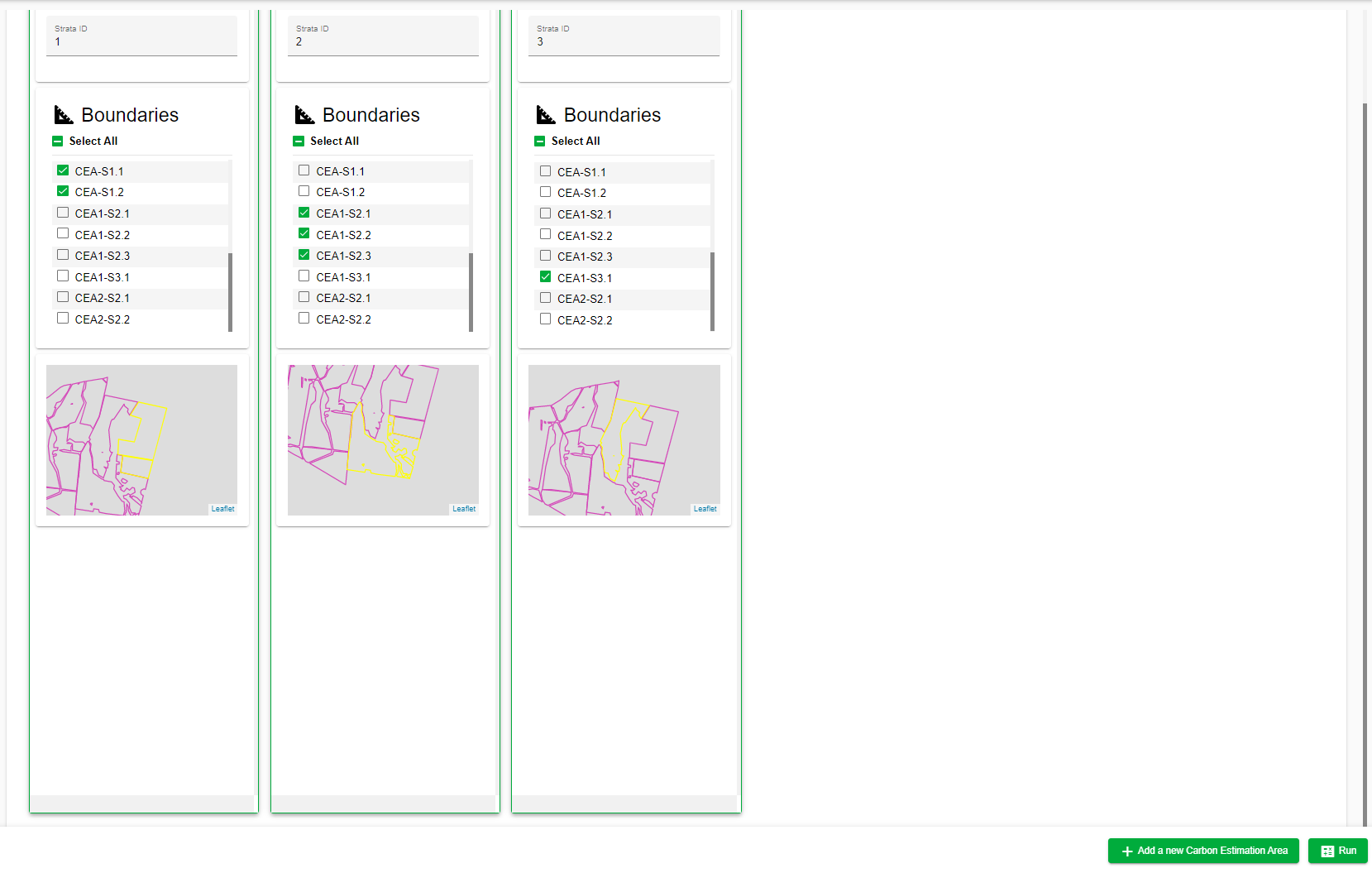 - If you have any other Carbon Estimation Areas, you can add them by selecting 'Add Carbon Estimation Area' at the bottom right-hand corner of the screen. Follow steps 5 and 6 to select and name your strata for the new CEA.