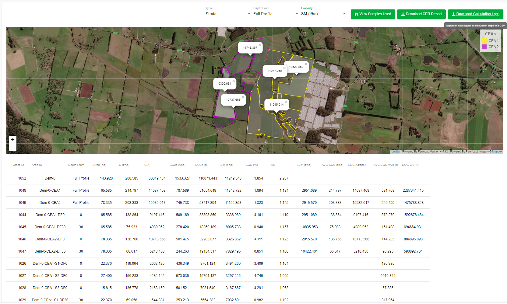 For a video walkthrough of the calculations, check out the video below. Note that FarmLab has worked extensively with the Clean Energy Regulator to provide compliant calculations according to the 2021 (formally the 2018) Soil Carbon legislation, and these calculations have been extensively tested with data provided by the regulator to ensure they meet the required standards for accuracy.