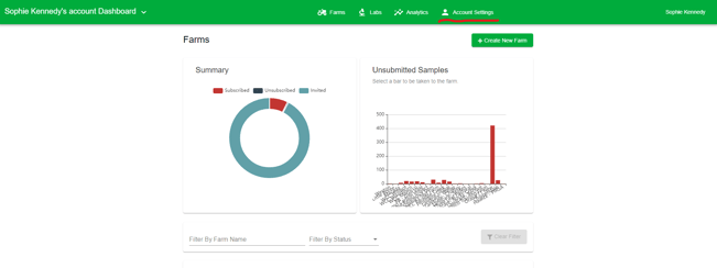 1. Once at the dashboard screen in FarmLab, go to 'account settings'.