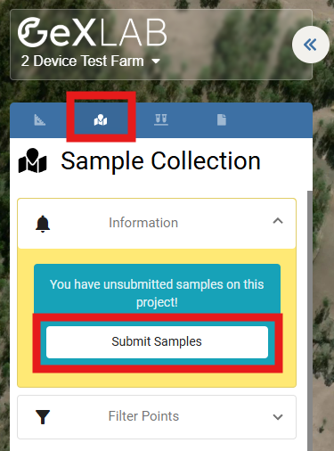 - Option 2: From your farm, select "Submit Samples" from the sample collection menu.